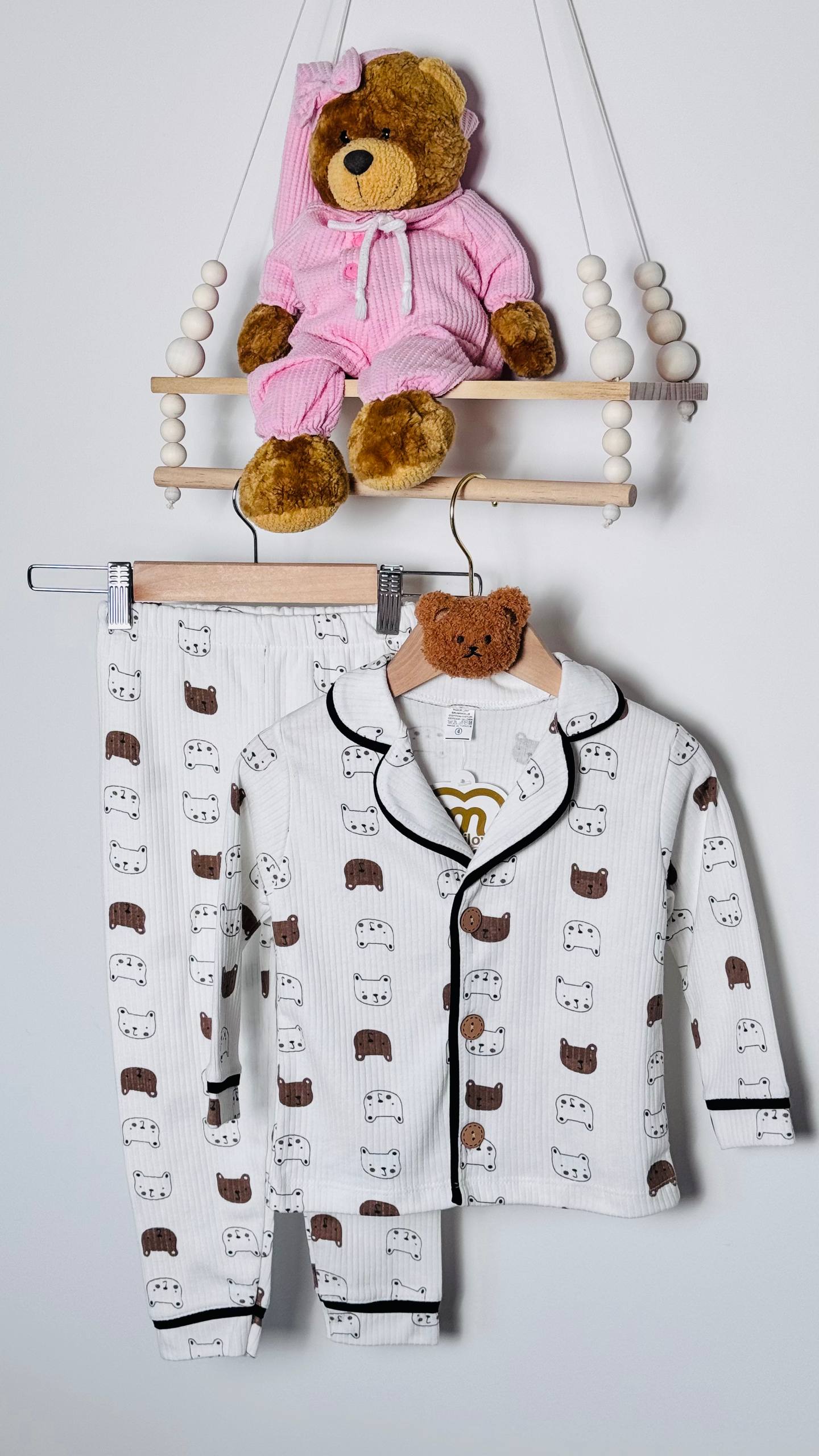 Mjúk og þægileg náttföt úr 100% bómull. Fullkomin fyrir viðkvæma húð barnsins – andar vel og heldur lögun eftir þvott. Sætt bangsamynstur sem börn elska.