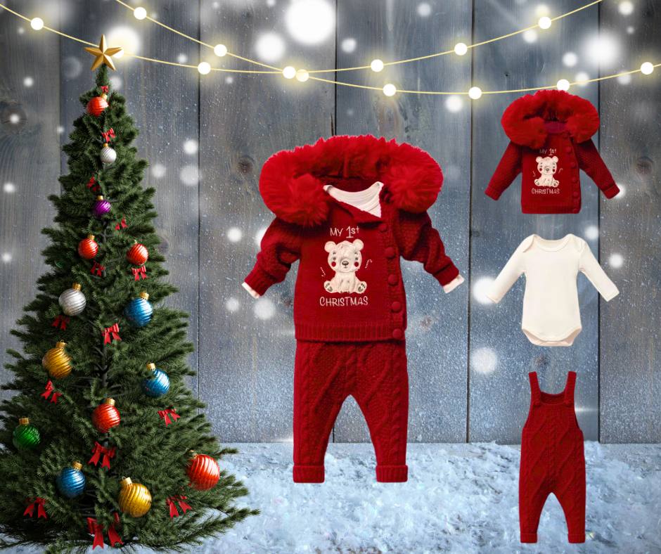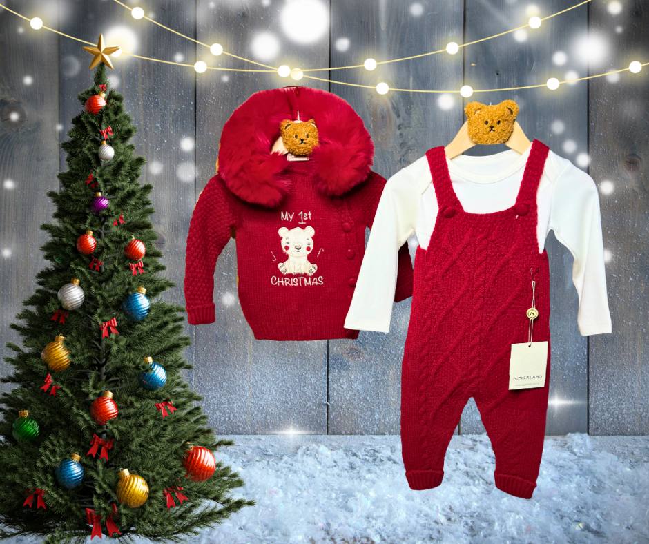 Þétt og vönduð prjón sem er mjúk við barnahúð. Fullkomið fyrir fyrstu jólin og hátíðlegar myndatökur.