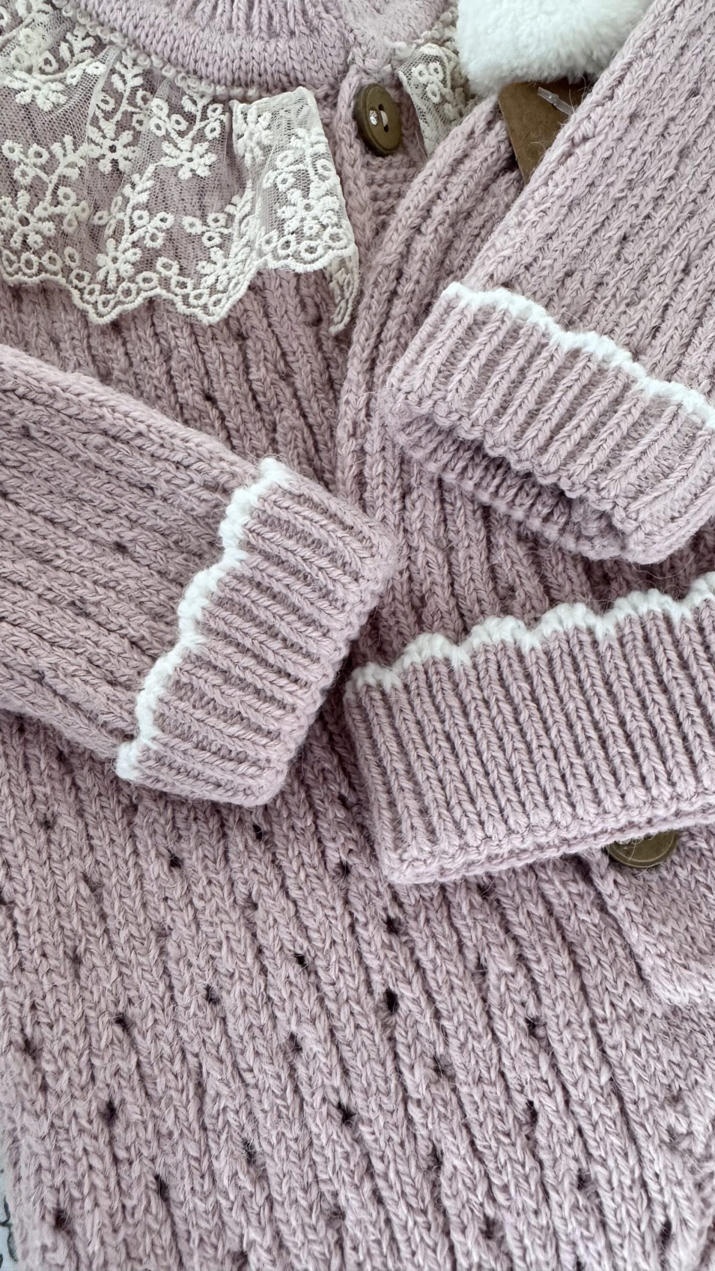 Prjónaður bleikur samfestingur