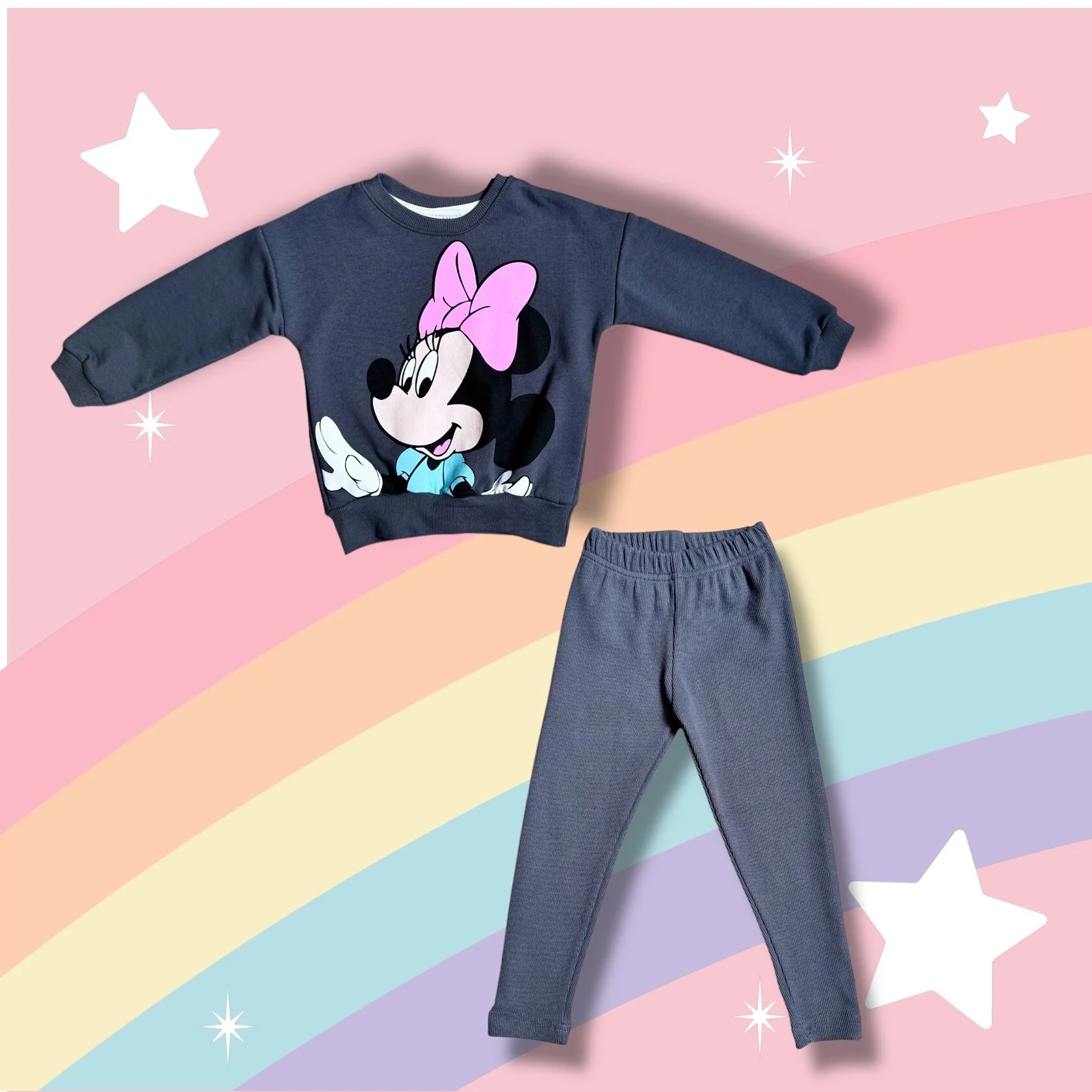 Uppáhaldsföt stúlkna með Disney persónum. Grafít peysa með Minnie að framan, leggings með fínu stroffi. Tilvalið fyrir bæði leikskóla og skóla.